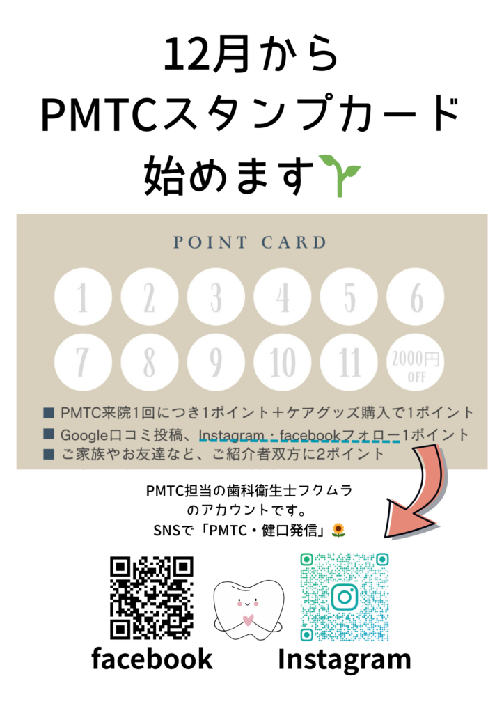 PMTCの定着を肌に感じてきた今日、12月からPMTCスタンプカードを開始♡